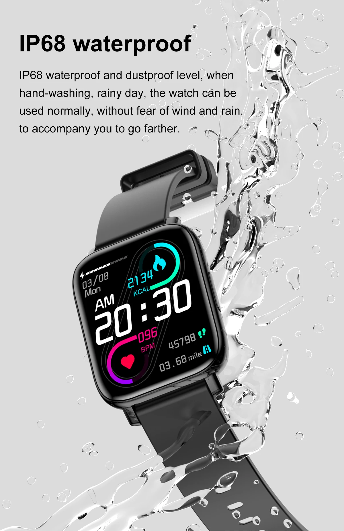 2. IP68 su geçirmez: yüzebilir ve ellerinizi yıkayabilirsiniz, ancak lütfen yüzerken saati takmayın.